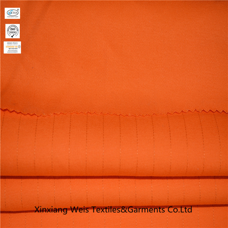 Dieser orange Antistatic Franc Twill Gewebe wird von 99% Baumwolle gemacht, die mit 1% statischer Antifaser gemischt wird, die kann besseren Schutz anbieten für Arbeitskräfte, die im gefährlichen envirement arbeiten mit Static, Flamme oder Feuer, bequem unterdessen halten. Mit dem propertity von flammhemmendem und von 260gsm belasten Sie Gewebe, kann es ein guter Begleiter für Träger, wohin sie in den dustries der elektrischen, chemischen Industrie, Feuerrettung, Schweißen, Bergbau, Werft, arbeiten oil&gas etc. sein.